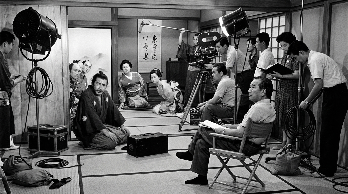 こんなに近くにはいないと思うが。音声さんも、サムライの格好してるし。